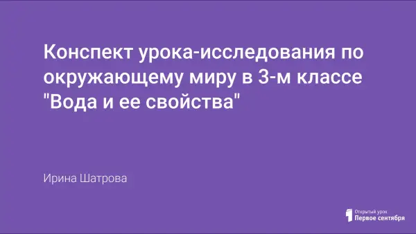 Конспект урока-исследования по окружающему миру в 3-м классе "Вода и ее свойства"