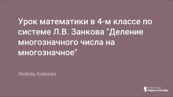 Предложенный урок направлен на развитие навыков устного счета, формирование знаний внетабличного умножения и деления многозначных чисел, воспитание внимательности и коллективизма. Урок сопровождается показом презентации.