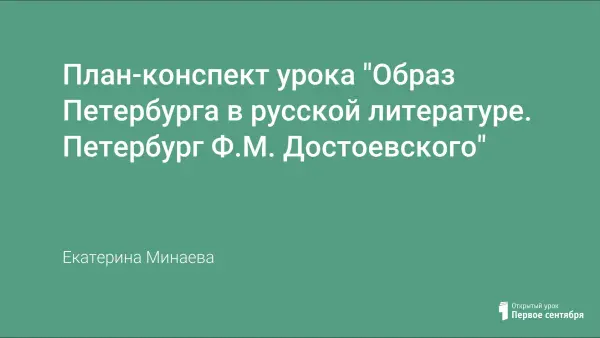 На уроке автор показывает, как писатель изобразил Петербург, жизнь "униженных и оскорбленных", как создал образ тупика, в котором оказались герои романа "Преступление и наказание". Перед проведением урока учитель дает индивидуальное задание нескольким учащимся, все остальные учащиеся должны подумать, как изображает Ф.М.Достоевский в своем романе столицу Российской империи. По окончании беседы учащиеся должны заполнить таблицу в тетради и ответить на вопрос: "Петербург Достоевского - это...".