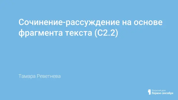 Урок с использованием презентации является хорошим материалом для учителя при подготовке учащихся 9-х классов к ГИА по русскому языку, поможет научить детей строить рассуждение на основе фрагмента текста (С2.2). К уроку прилагается алгоритм выполнения задания С2.2, который можно использовать в работе над любым экзаменационным текстом.