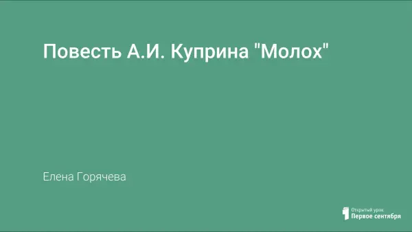Включение повести «Молох» в программу внеклассного чтения в старших классах позволяет расширить рамки представления современных старшеклассников о творчестве А.И. Куприна, осветить социальные и философские проблемы, поднимаемые писателем. Близки, понятны юным читателями нравственные ценности и моральные принципы, декларируемые Куприным в повести, как то: честь, достоинство, искренняя любовь, ответственность, способность к пониманию и сочувствию.