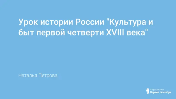 Урок истории России в 7-м классе – второй урок по теме, знакомящий учащихся с жизнью и бытом жителей Санкт-Петербурга в начале XVIII века. Цели урока: закрепить знания детей о месторасположении Санкт-Петербурга; показать взаимосвязь всех жанров культуры; развивать интерес к истории нашей родины; воспитывать доброжелательное отношение между учащимися.