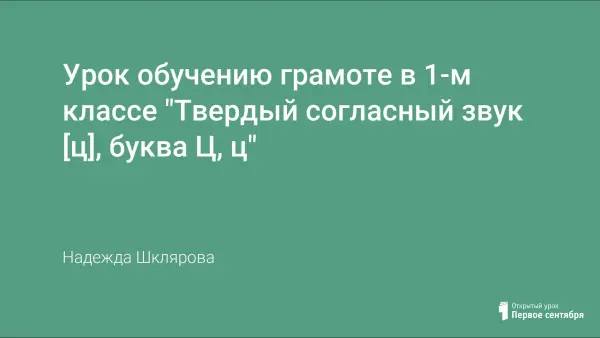 Урок знакомит учащихся с твёрдым согласным звуком [ц], буквой Ц, ц. У учащихся развивается фонематический слух, формируются навыки выразительного чтения, умения рассуждать, работы с текстом. Учитель не даёт тему урока в готовом виде, а организует коммуникативную деятельность учеников по исследованию возникшей ситуации в форме эвристической беседы.