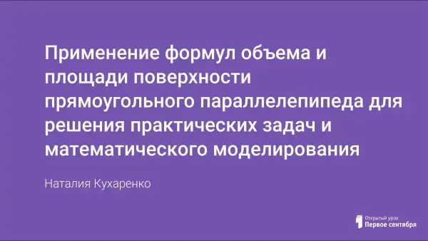 Урок закрепления в 5-м классе призван научить применять на практике формулы объема и площади поверхности прямоугольного параллелепипеда, вычислять площадь и объем макета прямоугольного параллелепипеда, распознавать типовые задачи в неформальных формулировках, ознакомить учащихся с задачами на данную тему из ЕГЭ.