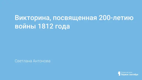 Викторина посвящена войне 1812 года, которая имела огромное значение для политического, общественного, культурного и военного развития России.