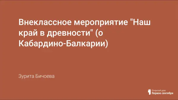 Внеклассное мероприятие посвящено истории Кабардино-Балкарской республики. Содержится материал о происхождении основных народностей (кабардинцев и балкарцев), чем они занимались в то время, где и как жили, об их предпочтениях в еде, одежде и воспитании нашими предками своих детей.