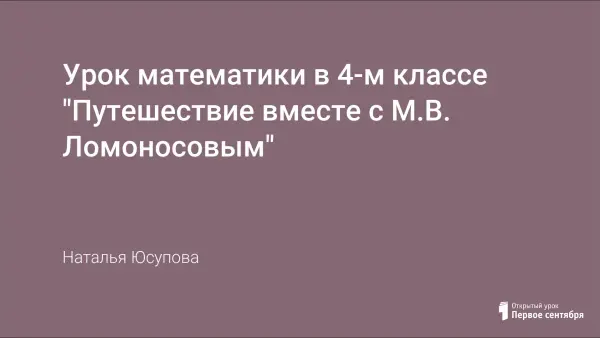 Урок знакомит с жизнью и деятельностью М.В. Ломоносова, показывает его вклад в развитие России. Цель урока: систематизировать и обобщить знания и умения решать задачи; совершенствовать вычислительные навыки; развивать познавательный интерес, умение рассуждать, мыслить, учить анализировать факты; воспитывать умение сотрудничать в паре, группе, уважать чужое мнение.