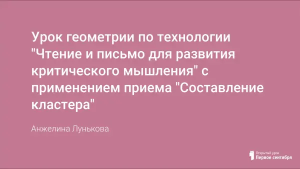 Урок геометрии по технологии чтения и письма для развития критического мышления с применением приёма составления кластера с целью сформировать навыки работы с понятиями рассматриваемой темы для того, чтобы учащиеся могли точно выполнить задания на их применение.