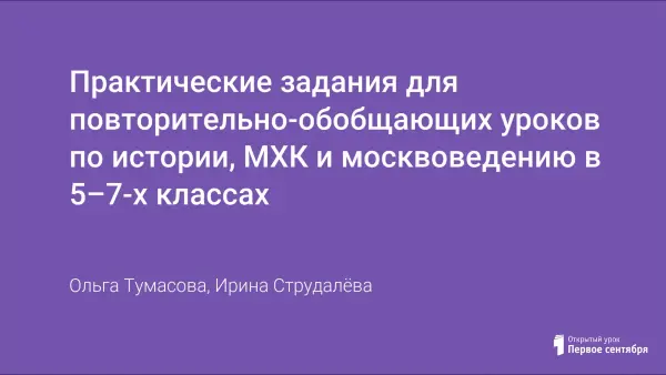 В статье приводятся образцы практических заданий по истории, мировой художественной культуре и москвоведению для 5-7-х классов, которые можно использовать на уроках повторения и обобщения материала и на уроках углубления знаний учащихся. На этих занятиях идёт повторение ранее изученных исторических терминов и понятий, школьники учатся оперировать новой терминологией, запоминают правильное написание слов; работают с историческими схемами, помогающими раскрытию темы урока.