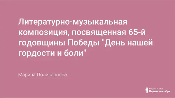Литературно-музыкальная композиция, посвященная 65-й годовщины Победы "День нашей гордости и боли"