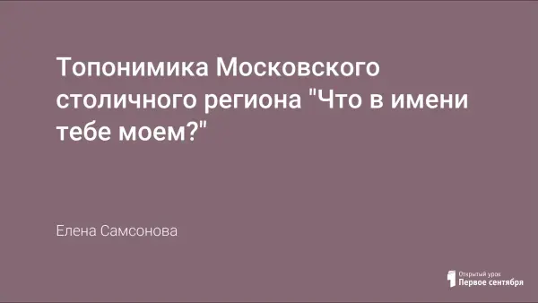 Целью урока является демонстрация роли географии в топонимике наряду с интегрированными с ней историей, москвоведением, лингвистикой и другими дисциплинами. В качестве объекта исследования рассматривается топонимика Московского столичного региона. Работая в группах, учащиеся приходят к выводу о сохраняющей, объединяющей и распределяющей функциях географии.