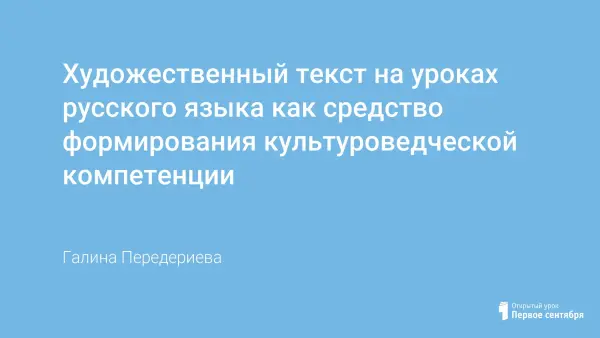 Художественный текст на уроках русского языка как средство формирования культуроведческой компетенции
