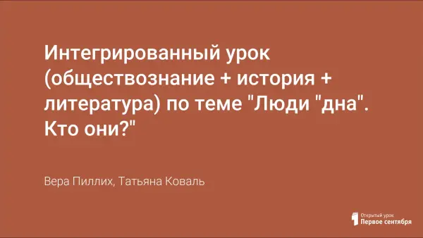 Интегрированный урок (обществознание + история + литература) по теме "Люди "дна". Кто они?"