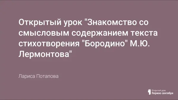 Открытый урок "Знакомство со смысловым содержанием текста стихотворения "Бородино" М.Ю. Лермонтова"