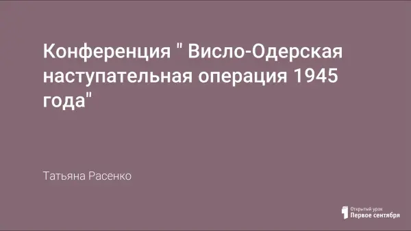 Конференция проводится с целью раскрыть значение Висло-Одерской стратегической наступательной операции, показать роль освободительной миссии Красной Армии в Европе, воспитывать чувство патриотизма, любовь к Родине, гордость за героизм и мужество советских солдат.