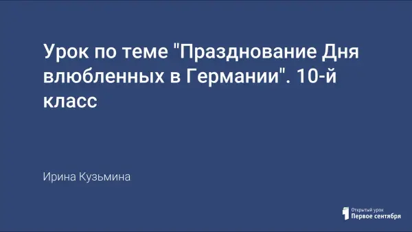 Открытый урок немецкого языка посвящен Дню святого Валентина. Формирует у учащихся внутреннюю мотивацию к изучению немецкого языка; расширяет уровень знаний о традициях и обычаях в Германии.
