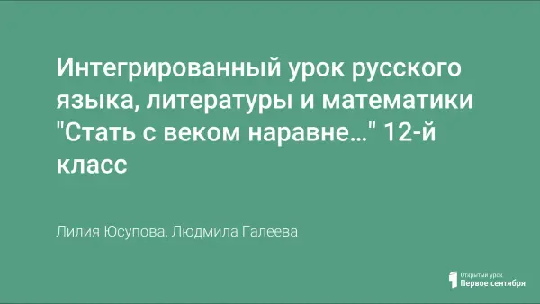 Интегрированный урок русского языка, литературы и математики "Стать с веком наравне…" 12-й класс
