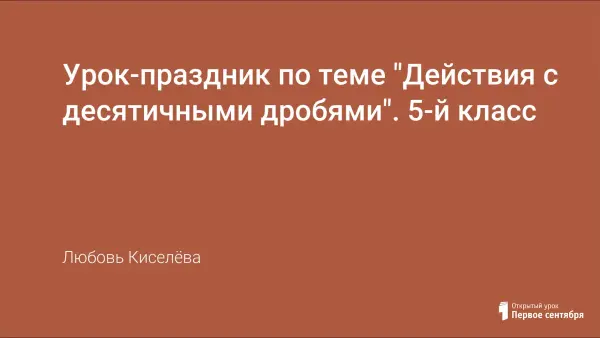 Урок проводится накануне 8 Марта, время проведения совпадает с окончанием изучения действий с десятичными дробями. Поэтому преследуют две большие цели - обобщение знаний и умений по теме и воспитание доброго и нежного отношения к маме. Весь урок к детям приходят сказочные герои (с помощью презентации) и приносят задания, а в ходе практической работы с геометрическими фигурками дети под музыку изготавливают подарок маме.