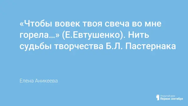 «Чтобы вовек твоя свеча во мне горела…» (Е.Евтушенко). Нить судьбы творчества Б.Л. Пастернака