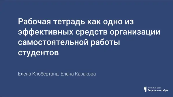 В статье рассматривается один из методов организации самостоятельной деятельности студентов – работа с рабочей тетрадью, приведены примеры рабочих тетрадей тренировочного типа по дисциплинам "Химия" и "Математика".