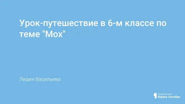 Виртуальный урок-путешествие предлагается учащимся 6-х классов. Особенности урока – в использовании компьютерной презентации PowerPoint. В помощь учителю привлекаются сказочные герои: Кикимора болотная, Старик-лесовик, Баба-Яга и Леший. В ходе урока ученики изучают особенности организации моховидных.