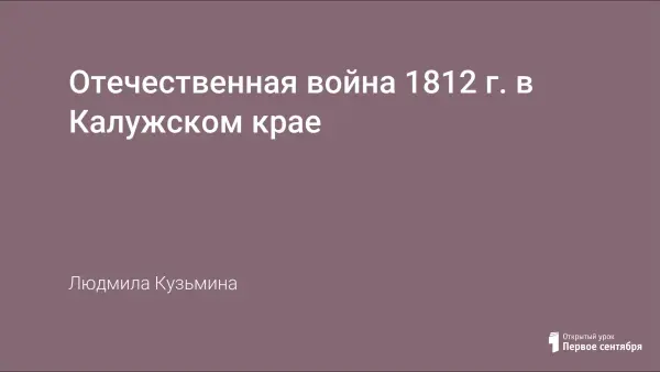 В статье показаны содержание и формы работы по патриотическому воспитанию (классные часы, внеклассные мероприятия, виртуальные экскурсии, конференции и т.д.). На примере военных событий 1812 года на территории Калужского края показаны особенности участия в войне отдельного региона, что имеет большое значение для понимания Отечественной войны в целом. Приведена викторина «Калуга в войне 1812 года» с презентацией.
