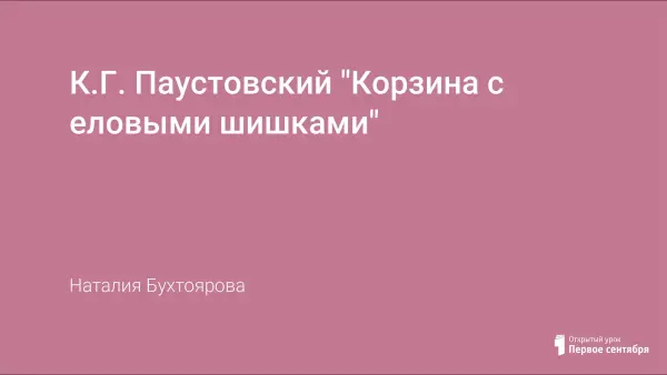 Урок позволяет детям погрузиться в удивительный и прекрасный мир рассказов К.Г. Паустовского. Уроку предшествует первичное знакомство с рассказом К.Г. Паустовского "Корзина с еловыми шишками". На уроке ребята слушают музыку Э.Грига и учатся основам эстетического анализа рассказа.