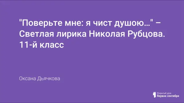 Урок по поэзии Н.Рубцова рассчитан на старшеклассников, так как в нем дается более глубокое освещение творчества поэта, для анализа выбраны стихотворения философского характера, которые раскрывают учащимся мир поэтических образов лирики поэта: свет, звезда, душа. Подборка стихотворений о поэте дает представление о многогранности его творчества, о неразрывной связи поэзии Рубцова с родной землей.