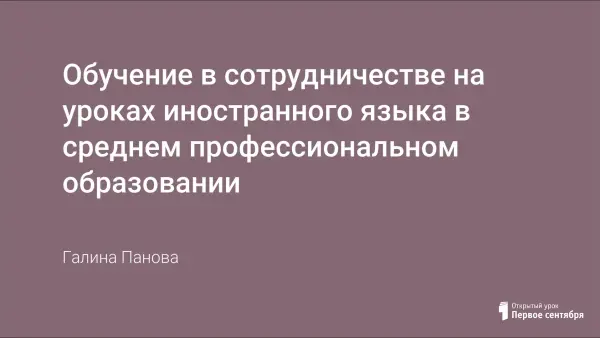 В статье речь идет о педагогической технологии «Обучение в сотрудничестве» – работе в малых группах студентов СПО. Обучение в сотрудничестве – это прекрасная возможность для студентов с любым уровнем знаний иностранного языка овладеть профессиональной коммуникативной компетенцией.