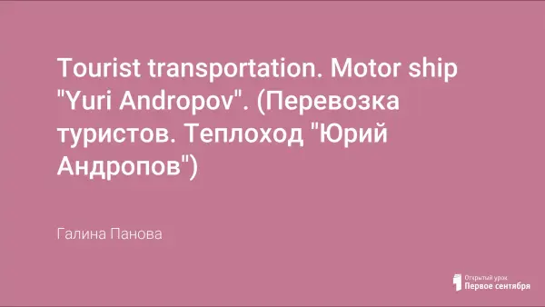 Данная методическая разработка урока может быть использована для занятия со студентами СПО специальностей «Судостроение» и «Судоремонт», целью которого является развитие профессиональной коммуникативной компетенции учащихся и их общего кругозора. Разработка урока проиллюстрирована презентацией, содержащей судовую терминологию. Урок рассчитан на то, что студенты хорошо знакомы с такими грамматическими темами, как: оборот there is/there are, повествовательное и вопросительное предложение в английском языке, чтение числительных и дат.