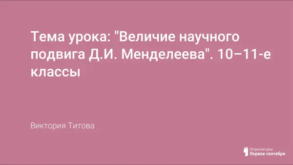 Целью проведения данного мероприятия является рассказ учащимся о жизни и научной деятельности Д.И. Менделеева, повышение интереса к изучению химии. Учащиеся разыгрывают ряд сценок, посвящённых жизни и научной деятельности Д.И. Менделеева, затем проводят викторину со зрителями. Мероприятие можно организовать среди нескольких классов из параллели в актовом зале учебного учреждения или в учебной аудитории.