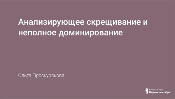 Цель урока - сформировать у школьников понятие "анализирующее скрещивание", познакомить их с сущностью и причинами неполного доминирования (промежуточного наследования).