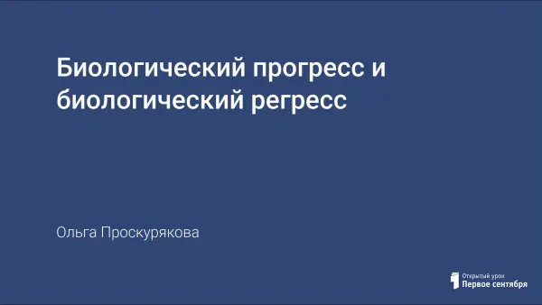 На уроке говорится о том, что процесс эволюции идет непрерывно под знаком приспособления организмов к окружающей среде. Биологический прогресс характеризуется возрастанием численности особей систематической группы, увеличением числа входящих в нее видов, подвидов, популяций, расширением ареала. Виды, находящиеся в состоянии биологического прогресса, выходят победителями в борьбе за существование.