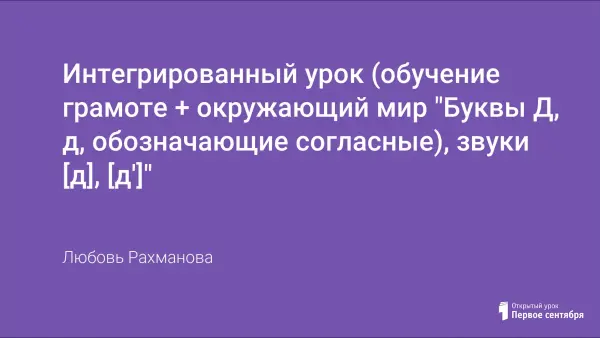 Интегрированный урок по обучению грамоте и окружающему миру в 1-м классе в форме путешествия. На уроке были использованы ИКТ, которые помогли быстро усвоить и закрепить учебный материал, который был представлен в красочной, наглядной форме и подобран с учётом возрастных особенностей детей.