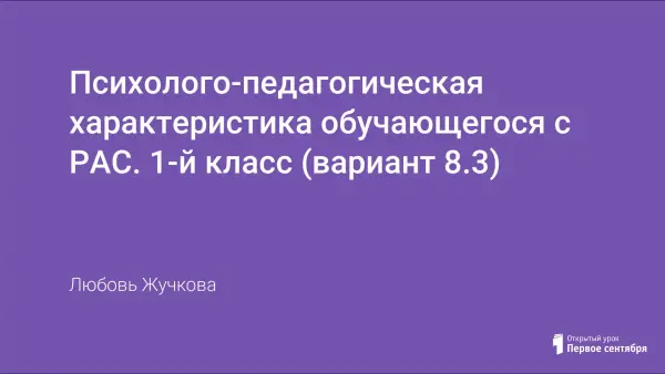 Приведена психолого-педагогическая характеристика обучающегося с РАС в 1-м классе.
