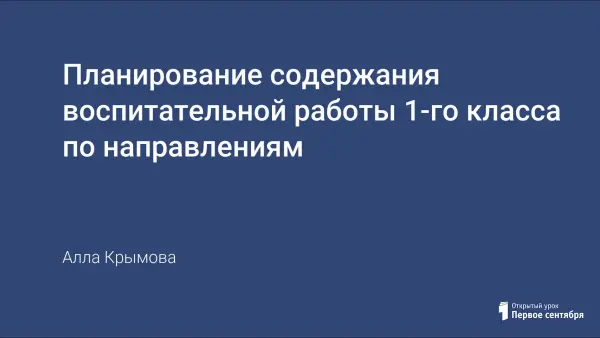 Младший школьный возраст называют вершиной детства. Меняются интересы, ценности ребенка, весь уклад жизни. В первом классе ведущим в воспитании является адаптация ребенка в социуме школы, развитие рефлексии собственного поведения, общение со сверстниками и взрослыми, воспитание гражданина, поэтому планирование воспитательного процесса несет определённые цели и задачи, исходящие из потребностей школы и особенности класса.
