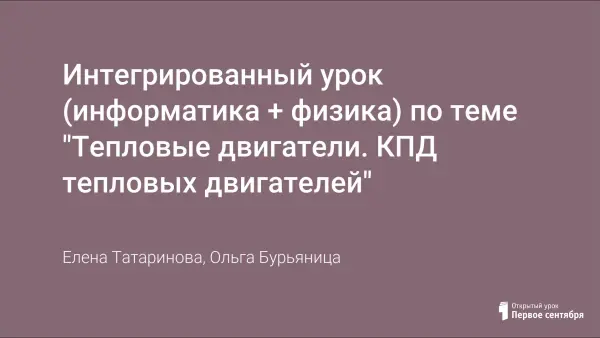 Интегрированный урок (информатика + физика) по теме "Тепловые двигатели. КПД тепловых двигателей"