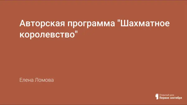 Программа «Шахматное королевство» рассчитана на начинающих игроков первого года изучения игры в шахматы. Цель программы – научить играть в шахматы, читать и записывать шахматные партии, овладеть умением играть на компьютере. В программе дается примерный тематический план, краткое описание каждого занятия. В приложении имеется занимательный материал, разработка внеклассного мероприятия – КВН.