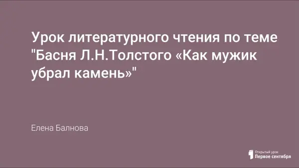 Цель урока: изучить басню Л.Н.Толстого «Как мужик убрал камень»; показать учащимся, что басня может быть в прозаической форме.