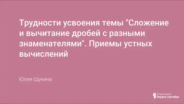 В статье приводится алгоритм нахождения наименьшего общего знаменателя, который не требует письменных вычислений. Любой пример с числами в пределах 100, в том числе и с дробями, должен выполняться устно, а значит и нахождение наименьшего общего знаменателя, и дополнительных множителей должно выполняться устно. Такой подход избавит учащихся от страха неудачи. Легко запоминающийся алгоритм приводит к быстрому усвоению материала и прочному навыку сложения и вычитания дробей с разными знаменателями.