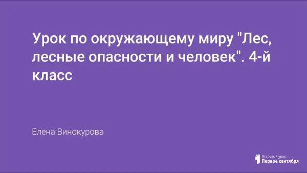 Урок проводится с целью сформировать у учащихся представление о роли леса в жизни человека и природы, познакомить с экологическими проблемами леса, показать важность рационального использования и охраны лесов, воспитывать любовь к природе, к русскому лесу, развивать познавательный интерес.