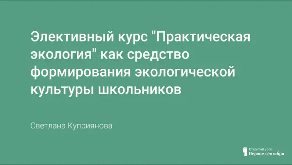 Элективный курс "Практическая экология" как средство формирования экологической культуры школьников