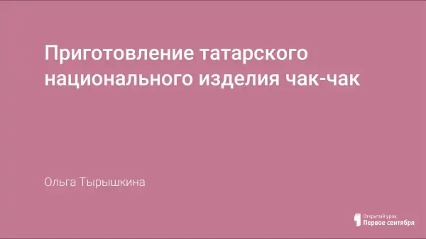 Урок призван актуализировать вопросы по подготовке продуктов для приготовления теста, повторить технику безопасности в горячем цехе, изучить технологию приготовления чак-чака, научить правильно эксплуатировать современное оборудование («фритюрницу»), определить и оценить качество выполненной работы.