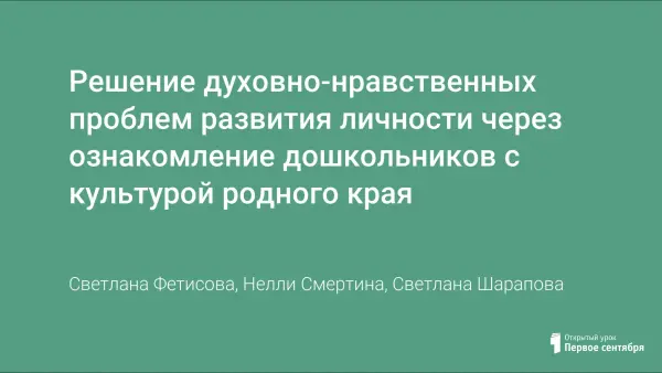Решение духовно-нравственных проблем развития личности через ознакомление дошкольников с культурой родного края