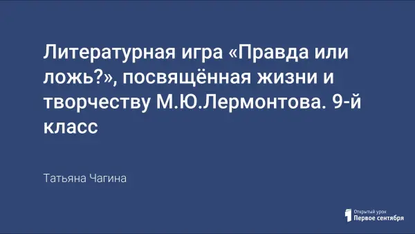 Литературная игра «ПРАВДА или ЛОЖЬ?», посвящённая жизни и творчеству М.Ю.Лермонтова, содержит вопросы, которые помогут обучающимся с нарушенным слухом по-новому взглянуть на русскую литературу первой половины XIX века, проверить свою эрудицию и память, а также получить интересные сведения об эпохе, биографии и творчестве М.Ю.Лермонтова.