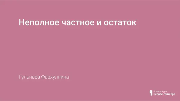 Действие деления с остатком предлагается рассмотреть учащимся в сопоставлении с действием деления нацело.Такое сопоставление позволяет акцентировать внимание учащихся на основных особенностях действия деления с остатком: результатом деления с остатком является не одно число, а пара чисел, из которых первое показывает, какое максимальное число раз делитель содержится в делимом, а второе – какое число остаётся при этом в остатке.