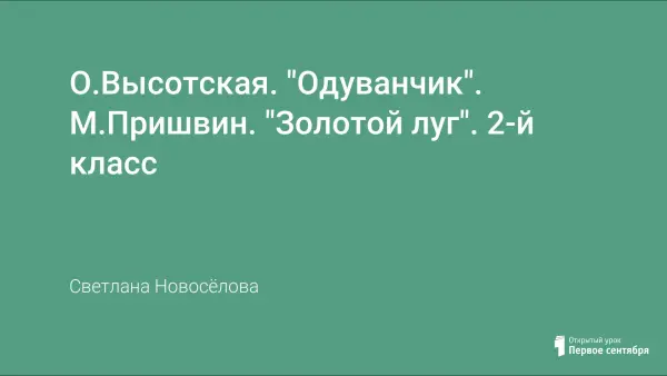 На уроке используются такие методы и приёмы, как беседа с учащимися, слушание произведения, моделирование обложки произведения, самостоятельное чтение, сравнение произведений разных жанров. По желанию предлагается творческая работа: сочинить рассказ об одуванчике «Маленькое солнышко».