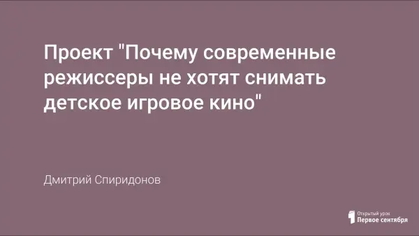 Представленный урок рассматривает проблемные стороны детского кинопроизводства.