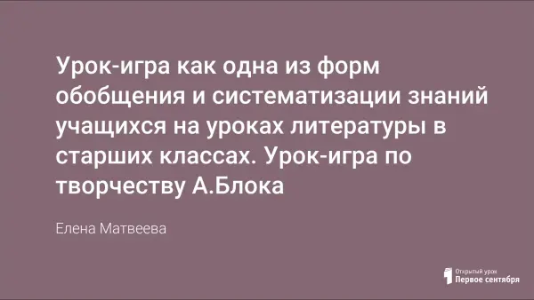 Урок-игра по творчеству А.Блока направлен на активизацию творческой деятельности учащихся, на вовлечение их в процесс познания, на развитие умений ориентироваться в необычных игровых ситуациях. Урок включает в себя презентации учащихся, литературную викторину и кроссворд.