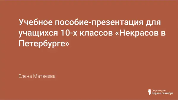 Данное учебное пособие предназначено для более тщательного и углубленного изучения творчества Н.А.Некрасова в 10-м классе школы глухих и слабослышащих. Представленный в презентации справочный материал поможет учащимся более полно и развернуто познакомиться с основными этапами жизни и творчества Н.А.Некрасова в Петербурге. Тестовые вопросы способствуют закреплению полученных знаний, используются для контрольного зачета и во внеурочной деятельности при проведении литературной викторины.